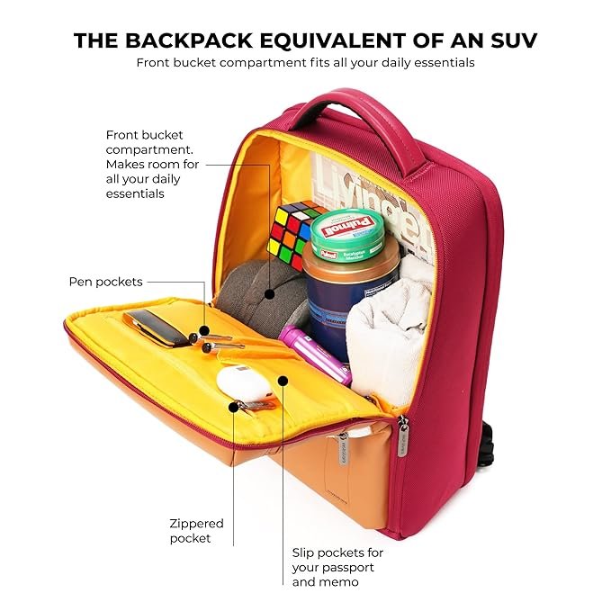 • Comfort and Convenience: Designed for comfort with padded shoulder straps, a zippered water bottle pocket, sunglasses loop, and a luggage sleeve for seamless travel. Size: 44 x 29.5 x 17 cm.